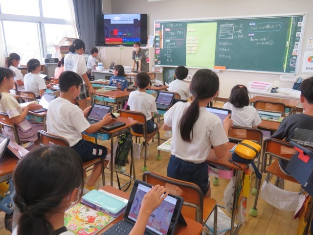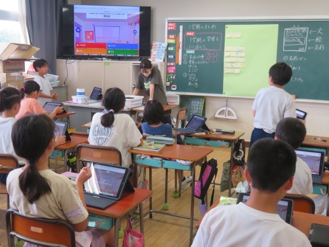 5年生は、家庭科で1学期学習した内容について、クイズを通して確認していました。