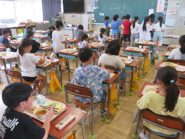 7/17 1学期最後の給食 公開日 2025/07/17 更新日 2025/07/17 できごと 1学期最後の給食の様子です。メニューは、ミルクパン、牛乳、アンサンブルエッグ、チリコンカン、イタリアンサラダでした。
