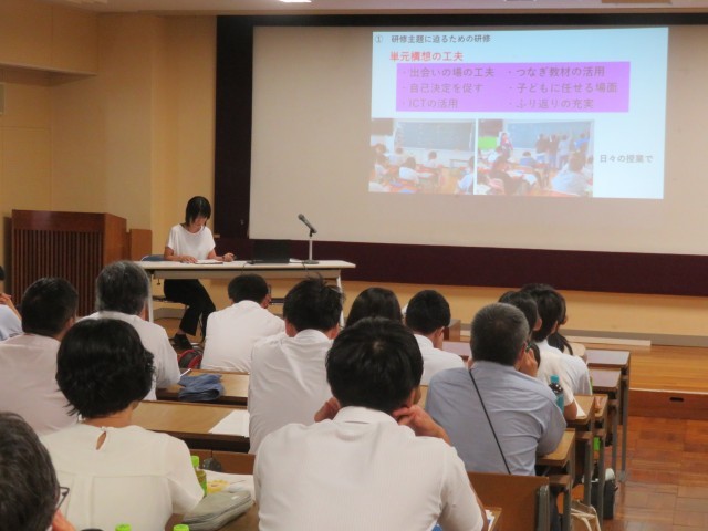 8/18 西一貫校合同研修会(1) 公開日 2025/08/19 更新日 2025/08/19 できごと 8月18日(月)、西一貫校(美土里小、平井小、日野小、西中)の先生方が2学期のスタートに向け、一堂に会して研修を行いました。 各学校の研修主任の先生から、1学期の授業実践と2学期の研修予定の説明がありました。一貫校で共通した取組など、確認することができました。