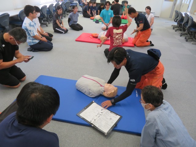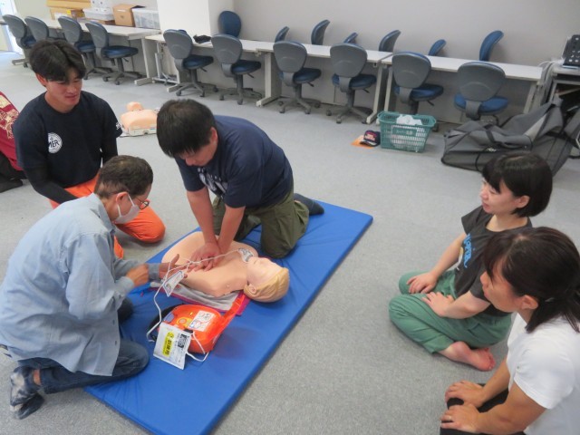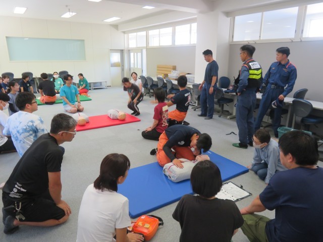 8/19 AED講習会 公開日 2025/08/19 更新日 2025/08/19 できごと 8月19日(火)、藤岡消防署の全面的なご協力で、本校職員とPTAの希望者によるAED講習会を行いました。 「倒れている人を発見したらどう行動したらよいか」を、その手順と注意点、AEDの使い方について、分かりやすく教えていただきました。 たくさんの実技ができました。ありがとうございました。