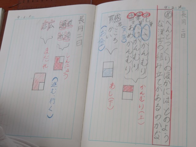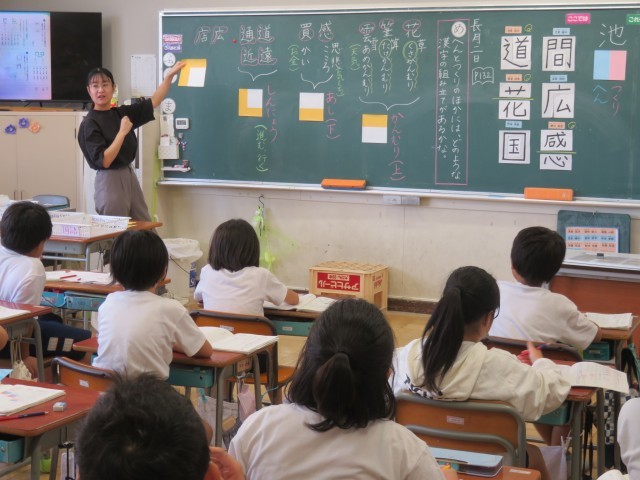 9/2 国語の授業 公開日 2025/09/02 更新日 2025/09/02 できごと 3年生は、国語「漢字の組み立て」で、「へん」や「つくり」以外の組み立てについて考えました。 漢字を「パーツに分けて考える」、「パーツで仲間分けをする」など、漢字に興味関心がもてたようです。