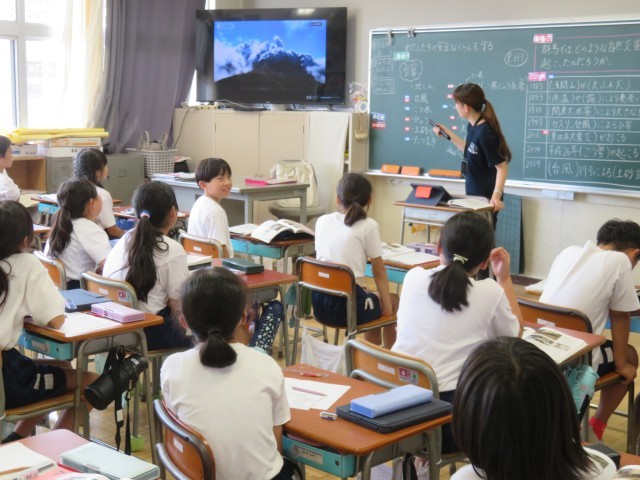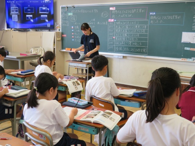 9/2 社会の授業 公開日 2025/09/02 更新日 2025/09/02 できごと 4年生は、社会「わたしたちの安全なくらしを守る」で、群馬県でこれまでに起こった自然災害について考えていました。 噴火の映像資料をじっと見入っている子どもたちもたくさんいました。どんな対策をしているのか興味をもって調べていけそうです。