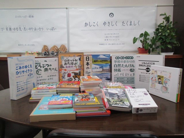 9月8日(月)、サンヨー株式会社代表取締役の高瀬忠尚様が美土里小学校に来校され、子どもたちに78冊の本を寄贈してくださいました。