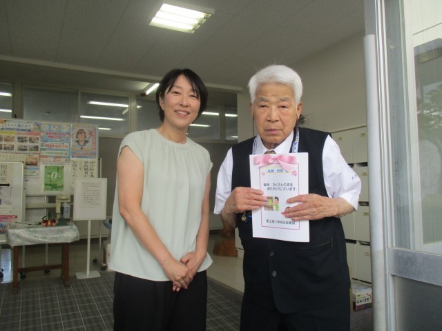 高瀬様から「本をたくさん読んでください」とお話があり、図書委員会の子どもたちが感謝の手紙を手渡しました。大切に読ませていただきます。ありがとうございました。