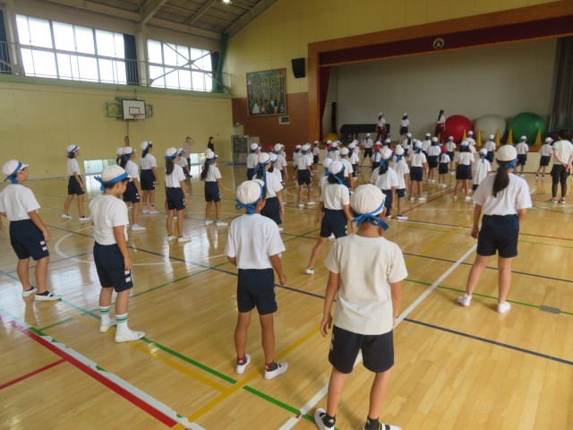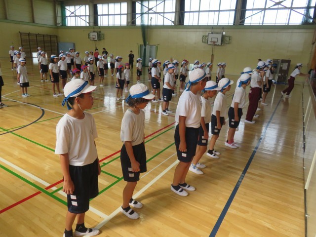 9/9 体育集会(1) 公開日 2025/09/09 更新日 2025/09/09 できごと 9月9日(火)の業前活動は、体育集会でした。各団に分かれて、団別ダンスの並び方を確認しました。 6年生が考えた計画のとおり、下級生に動き方や動く場所を教えていました。先生方は、6年生を信じて、じっと見守りました。