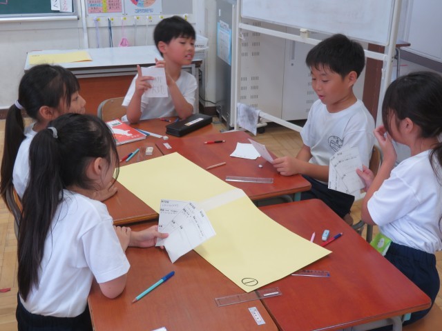 グループに分かれて、自分の考えを広げるための話し合いにチャレンジしていました。