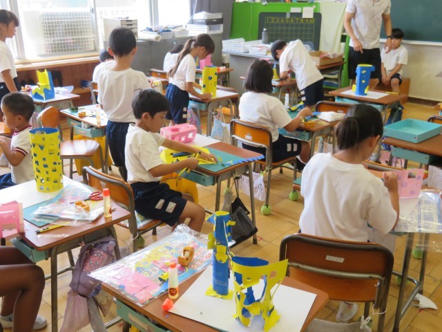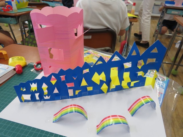2年生は、図工「まどからこんにちは」で、カッターを使いながら、すてきな作品を作っていました。