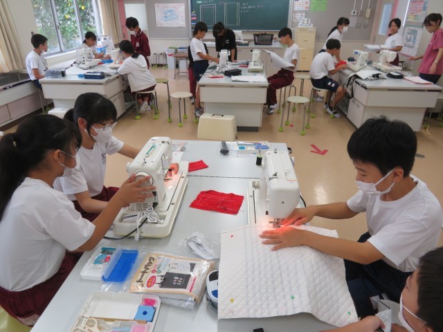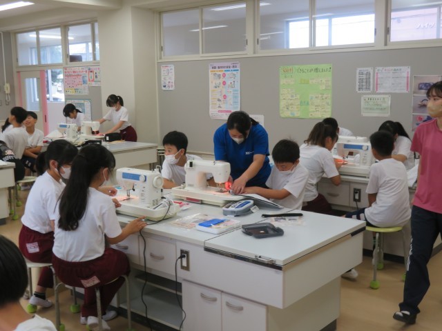 9/19 家庭科の授業(1) 公開日 2025/09/22 更新日 2025/09/22 できごと 9月19日(金)、6年生は、家庭科「ソーイングで生活を豊かに」で、トートバッグ作りに挑戦しています。 この時間は、ミシンで、バッグのわきを縫いました。西ドリームネットボランティアの方にミシンの使い方の助言をしてもらいました。
