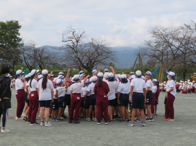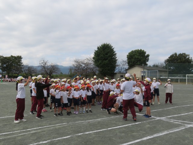 6年生の声かけに、1~5年生がすばやく動こうとしています。