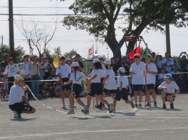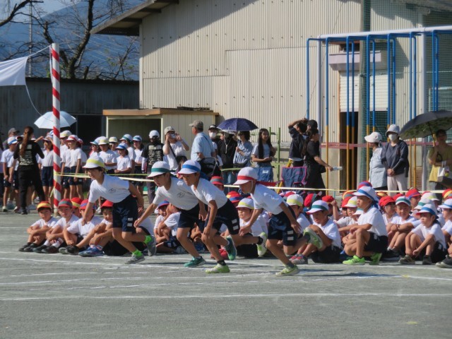 写真は、2年徒競走、審判係、1年徒競走の様子です。