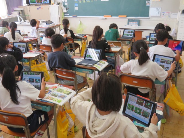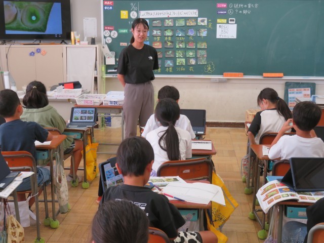 3年生は、これまで育ててきたひまわり、アサガオなどを比べて、「植物はたねからどのように育つか」をまとめていました。