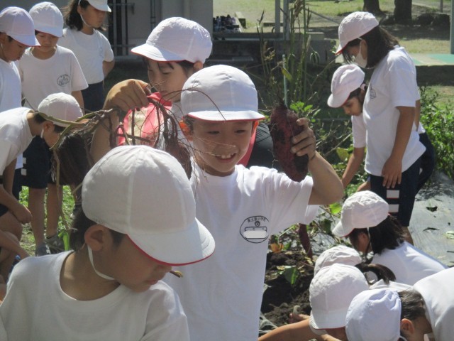 2年生の生活科「めざせ やさいづくり名人」の最終回は、サツマイモの収穫。