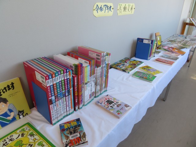 10/7 高瀬文庫 公開日 2025/10/08 更新日 2025/10/08 できごと 10月7日(火)、9月に高瀬忠尚様(サンヨー株式会社)に寄贈していただいたたくさんの本(高瀬文庫)が図書室前に展示されています。 巡回司書さんが、子どもたちに貸し出せるように整備してくれました。たくさんの子どもたちに読んでほしいです。