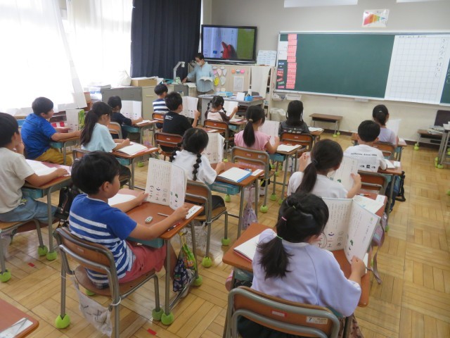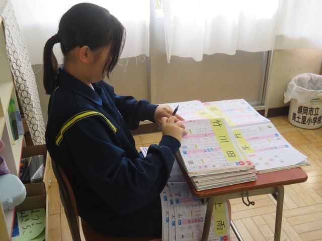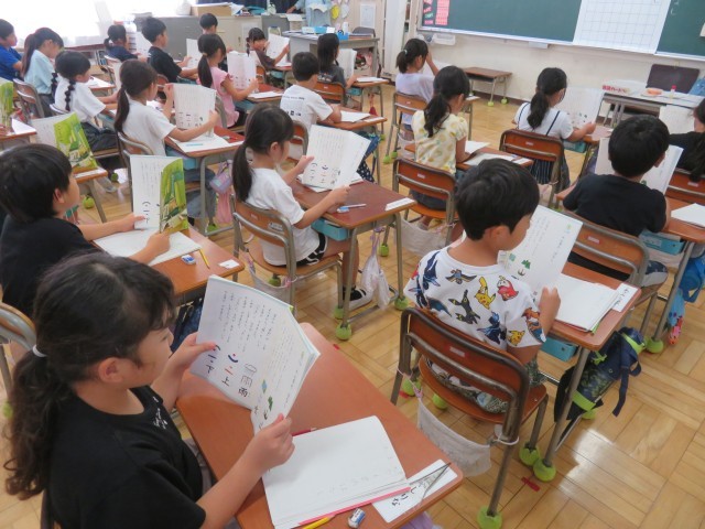 10/8 国語の授業(2) 公開日 2025/10/08 更新日 2025/10/08 できごと 1年生の国語「かん字のはなし」の授業でも、子どもたちはとてもいい姿勢で取り組んでいました。 チャレンジウィーク(事業所体験)の西中生が、教室の後ろで漢字スキルの丸付けを体験していました。