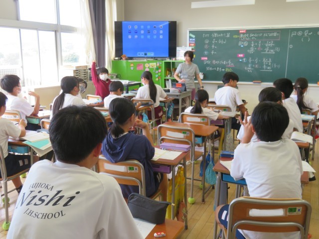 10/8 チャレンジウィーク 公開日 2025/10/08 更新日 2025/10/08 できごと チャレンジウィーク(事業所体験)の西中生の様子です。いろいろな学年の授業で活躍しています。 写真は、4年の算数、6年の社会、6年の算数の様子です。小学生のよい手本となっています。 10月10日(金)が最終日ですが、「教員の仕事」の大変さや魅力を感じてほしいと思います。