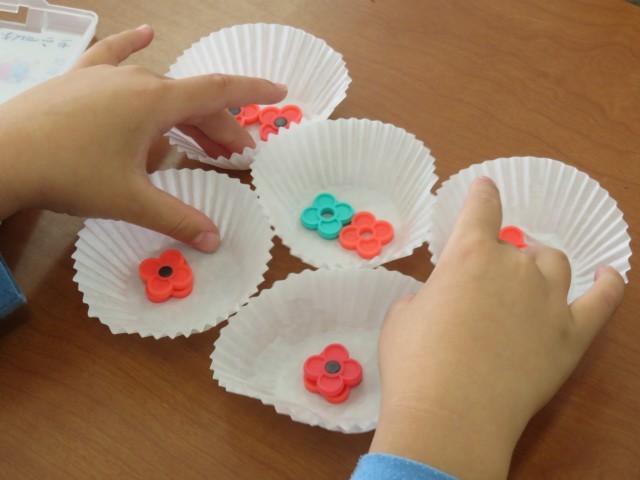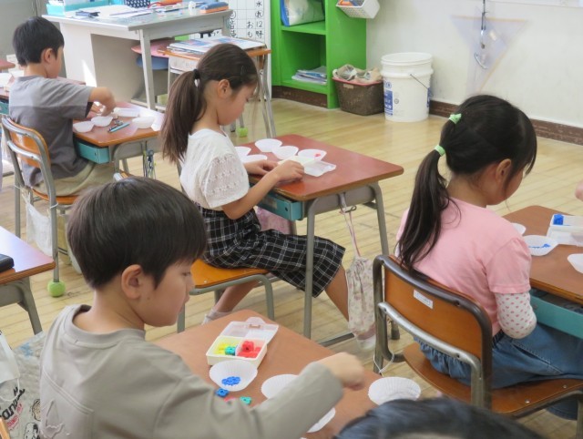 10/15 算数の授業 公開日 2025/10/15 更新日 2025/10/15 できごと 10月15日(水)、2年生は算数「かけ算」に挑戦していました。 おはじきとお皿を使って、繰り返し操作をすることで、「2×5」と「5×2」の違いを身に付けていました。