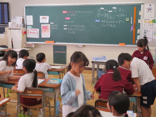 10/17 算数の授業 公開日 2025/10/17 更新日 2025/10/17 できごと 10月17日(金)、1年生は、算数「ひろさ」の学習にチャレンジしました。 「ひろさ」はどうやってくらべられるか、考えました。