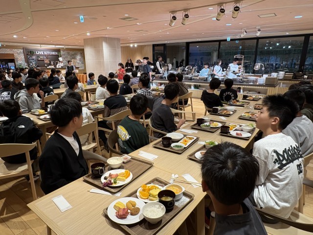 朝食もビュッフェ。いろいろな料理を楽しみました。8:15にキッザニアに向けてホテルを出発します。