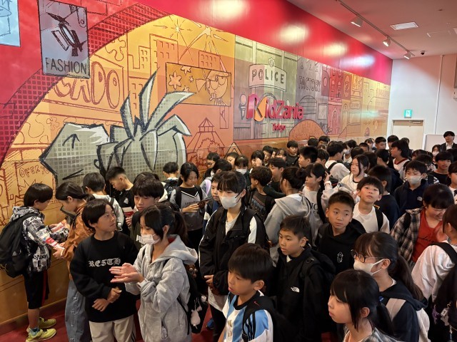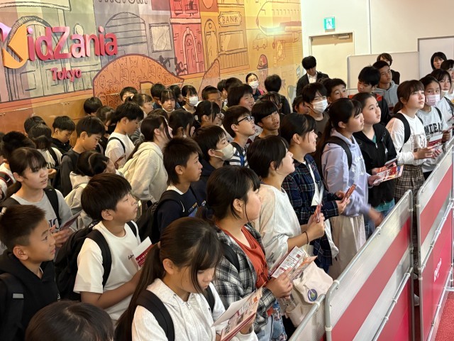 10/20 修学旅行(3) 公開日 2025/10/20 更新日 2025/10/20 できごと 9:00キッザニアの開園に並びました。思い思いの仕事の予約をして、体験をします。 ミールクーポンを使っての昼食を含めて13:00まで楽しみます。