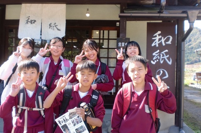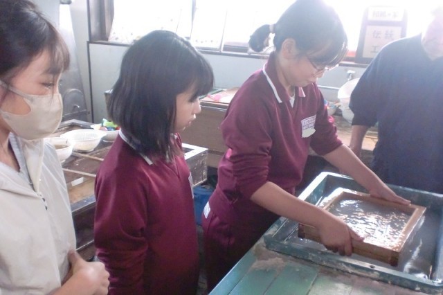 班別行動の和紙作りの様子です。