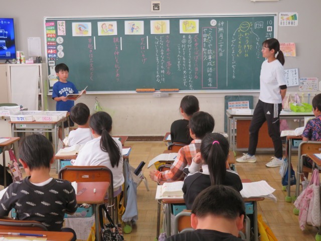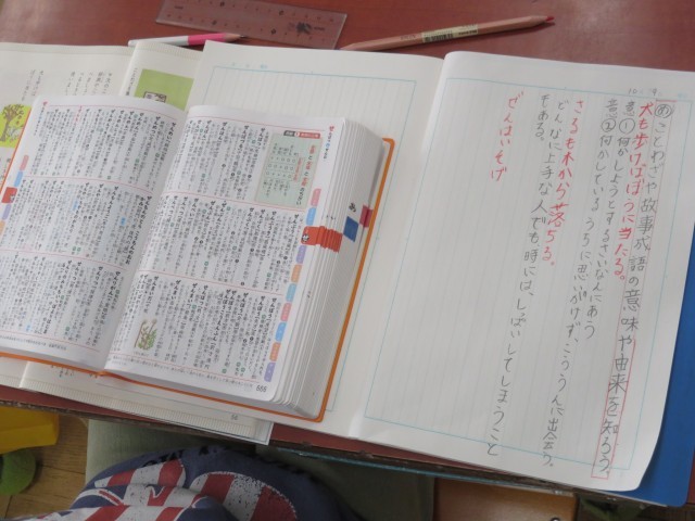 10/29 国語の授業(1) 公開日 2025/10/29 更新日 2025/10/29 できごと 10月29日(水)、3年生は、国語「ことわざ・故事成語」に取り組んでいました。 子どもたちは意欲的に国語辞典で意味を調べ、ノートにまとめていました。