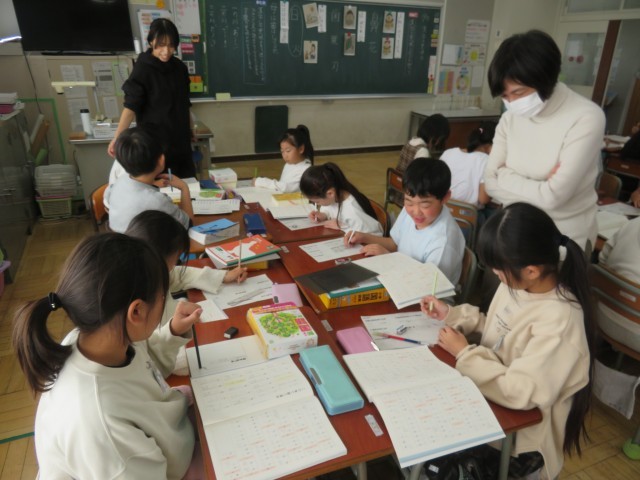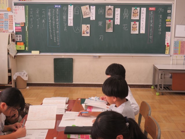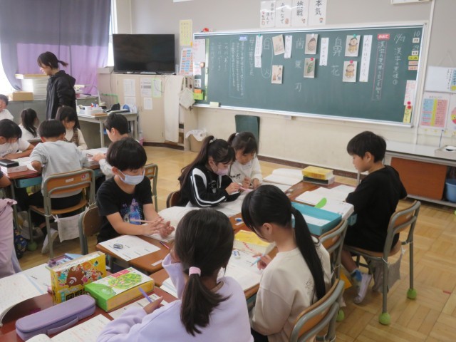 10/29 国語の授業(2) 公開日 2025/10/29 更新日 2025/10/29 できごと 3年生は、教育実習生が国語「漢字の意味」の授業を行いました。 国語の教科書の巻末にある「これまでに習った漢字」を使って、同じ読み方をする漢字を集めました。