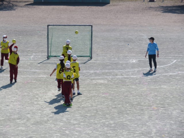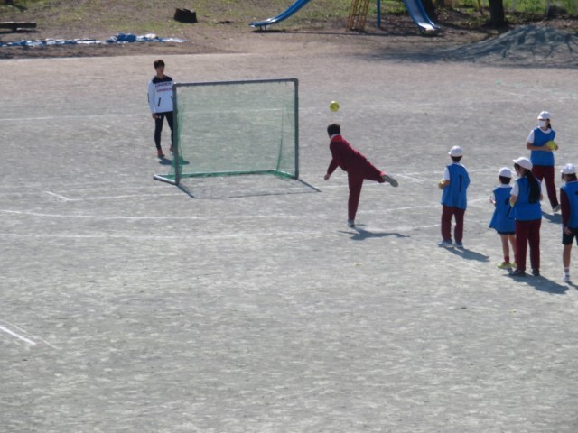10/30 体育の授業 公開日 2025/10/30 更新日 2025/10/30 できごと 10月30日(木)、6年生は、教育実習生が体育「ハンドボール」の授業を行いました。 これまで学習した3歩目で踏み切ること、高いところからシュートの打つことを意識して練習しました。