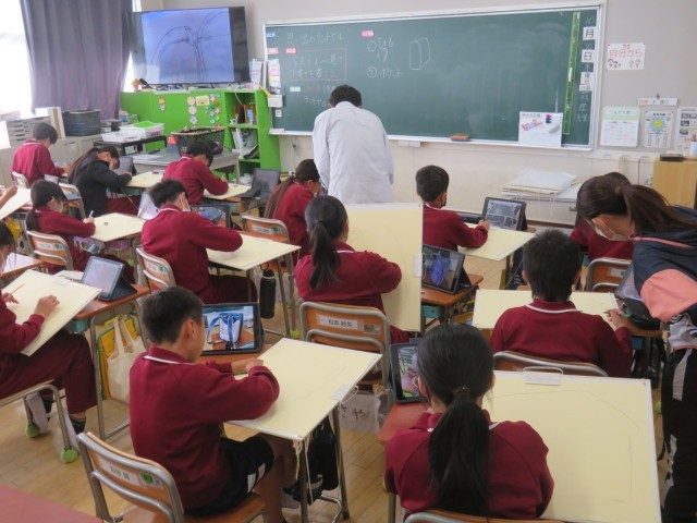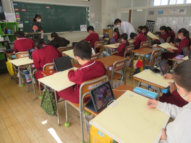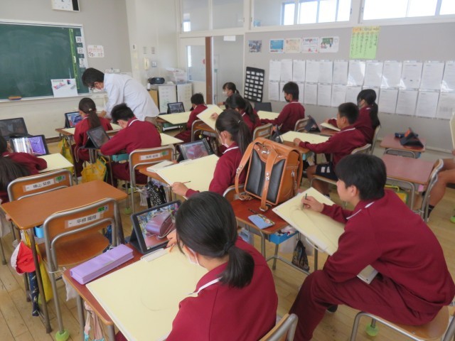 10/30 図工の授業 公開日 2025/10/30 更新日 2025/10/30 できごと 6年生は、図工「思い出のランドセル」で、これまで考えた構図を生かして下書きに取り組みました。 1学期にお世話になった黒澤隆先生の助言もいただきながらチャレンジしていました。