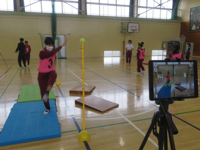 10/31 体育の授業(1) 公開日 2025/10/31 更新日 2025/10/31 できごと 10月31日(金)、6年生は、教育実習生による体育「走り高跳び」の授業を行いました。 一人一人が自分の課題に応じた練習場所を選んで、タブレットで自分の跳び方を確認しながら練習に取り組んでいました。