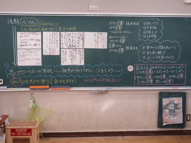 11/11 人権集会 公開日 2025/11/11 更新日 2025/11/11 できごと 11月11日(火)、美土里小では、今日から2週間の「人権集中学習」となります。「思いやりいっぱいの学校にしよう」をスローガンに、人権について一人一人が考えてほしい、と児童会から投げかけがありました。 これを受けて、早速、3年2組で話し合いをしていました。