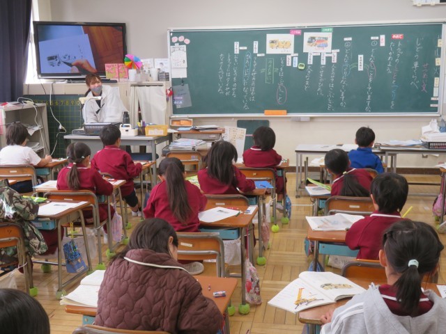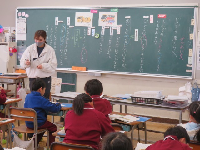 1年生は、国語「じどう車くらべ」で、トラックの「しごと」と「つくり」について、読み取っていました。