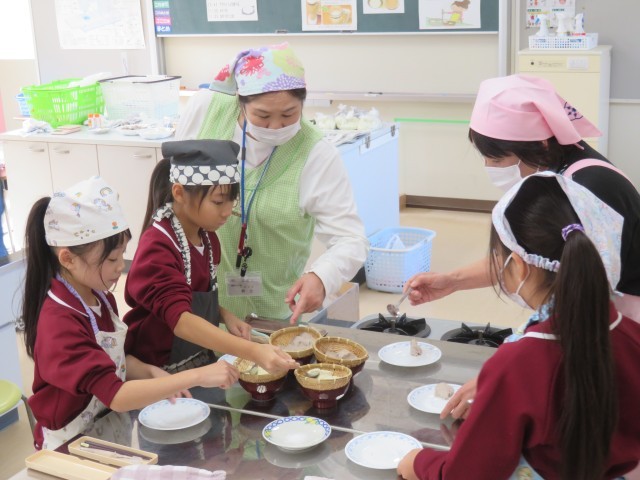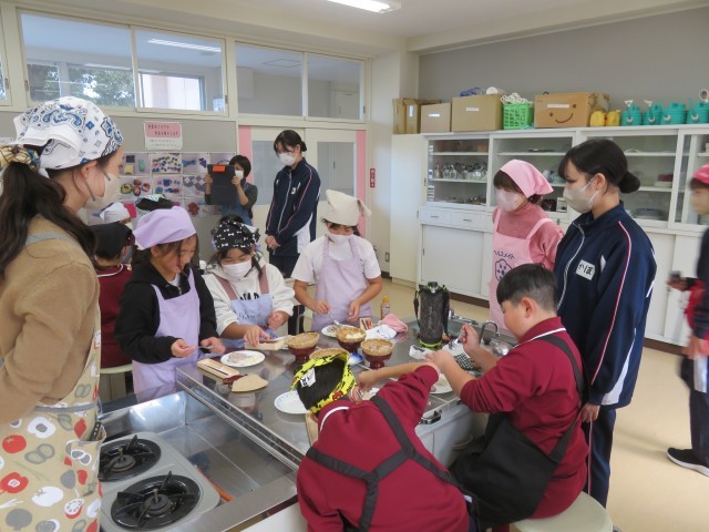 11/11 とうふ作り(3) 公開日 2025/11/11 更新日 2025/11/12 できごと 大豆を変身させて豆腐を作り、自分たちで作った豆腐を味わいました。貴重な体験ができました。 食生活改善推進員(食改推)の皆さん、健康づくり課の栄養士さん、ありがとうございました。