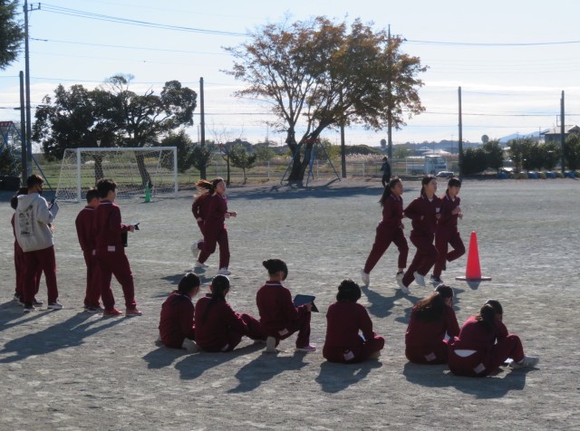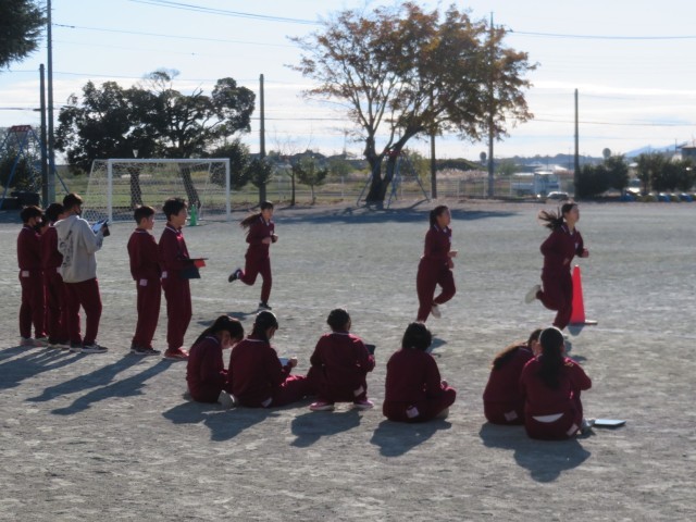 11/19 体育の授業 公開日 2025/11/19 更新日 2025/11/19 できごと 6年生は、体育「持久走」で、自分で決めた目標を目指して、5分間走り続けることにチャレンジしました。 21日の「持久走大会」に向け、タブレットを使って、1週ごとのタイムの変化を計測していました。