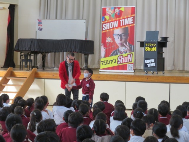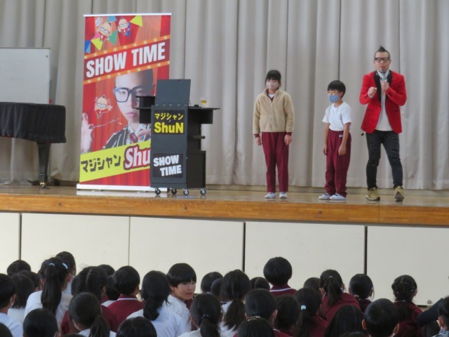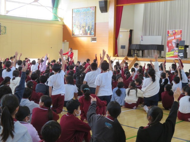 11/21 マジックショー(1) 公開日 2025/11/21 更新日 2025/11/21 できごと 11月21日(金)、PTA広報研修委員会が企画・運営した『マジックショー』を美土里小学校の体育館で行いました。 マジシャンのShuNさんの素晴らしい『マジック』に子どもたちは大興奮でした。
