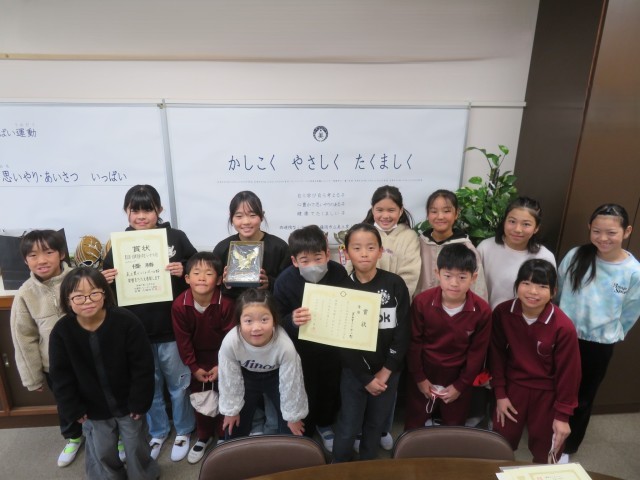 11/25 表彰(社会体育) 公開日 2025/11/25 更新日 2025/11/25 できごと バレーボール、サッカーの社会体育で活躍した子どもたちを表彰しました。 素晴らしい結果でした。おめでとうございます。