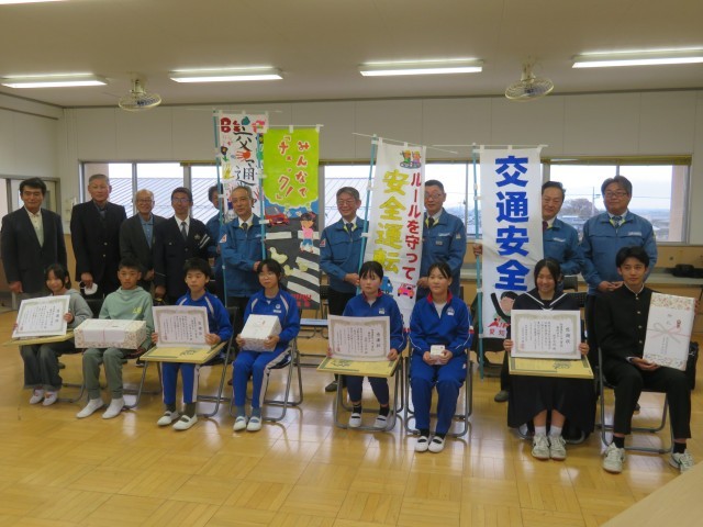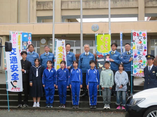 11/25 WDS交通事故ゼロ活動表彰(2) 公開日 2025/11/25 更新日 2025/11/25 できごと 夏休みに子どもたちが作り上げた『のぼり旗』が、全国41カ所の愛知陸運(株)の事業所に掲げられ、ドライバーさんの交通安全意識の高揚が図られます。 私たちも、よりいっそう『交通安全』に努めていきたいと感じました。