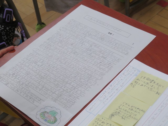 12/3 国語の授業 公開日 2025/12/03 更新日 2025/12/03 できごと 12月3日(水)、3年生は、国語「わたしの町のよいところ」で、一人一人が書いた「紹介文」を読み合って、感想を伝え合いました。 自分で書いた紹介文のよいところ、頑張ったところの発表が素晴らしかったです。