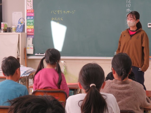 12/10 保健集会 公開日 2025/12/10 更新日 2025/12/10 できごと 12月10日(水)の業前活動は、「保健集会」でした。先日、学校保健委員会で「心肺蘇生」について学んだことを、保健委員が全校児童にオンラインで伝えました。 困ったときには、「声を出して助けを呼ぶ」ことも大切であると、低学年にも分かりやすいように、「動画」を使って説明しました。