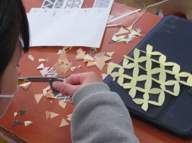 12/16 図工の授業 公開日 2025/12/16 更新日 2025/12/16 できごと 6年生は、図工で「日本の伝統模様」で切り絵作りにチャレンジしていました。 細かい模様に一つ一つ、はさみの切り込みを入れていました。仕上がりが楽しみです。