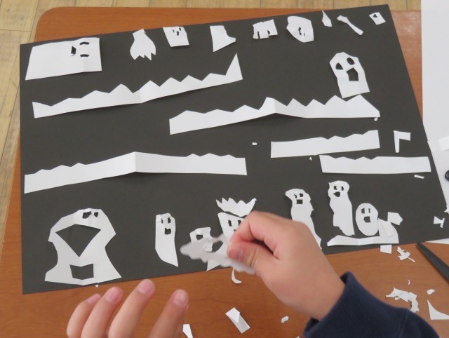 12/17 図工の授業(1) 公開日 2025/12/17 更新日 2025/12/17 できごと 2年生は、図工「はさみでアート」に取り組んでいました。はさみで切った紙片を貼り合わせて、思い思いの作品を作っていました。