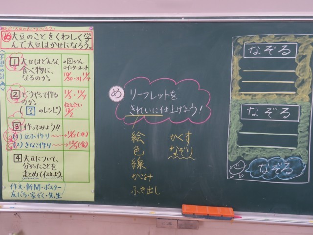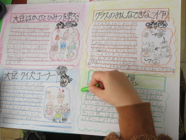 3年生は、総合的な学習の時間「大豆のすごさをさぐろう」のまとめをしていました。