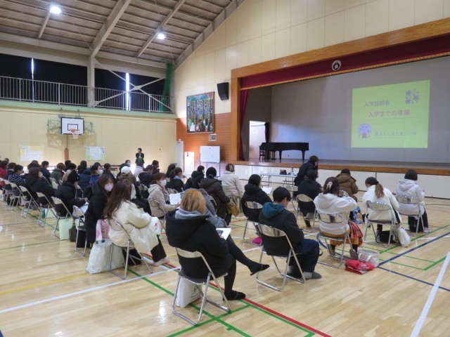 1/23 入学説明会 公開日 2026/01/23 更新日 2026/01/23 できごと 1月23日(金)、4月に美土里小に入学する新入学児童の保護者様にお越しいただき、「入学説明会」を行いました。 入学への準備に関わる説明、通学班づくり、物品の購入など、大変お世話になりました。4月7日の入学式を職員一同楽しみにしております。