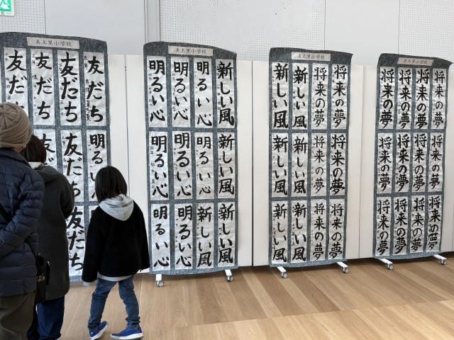 1/25 図工美術書初め展(2) 公開日 2026/01/25 更新日 2026/01/25 できごと たくさんの保護者、ご家族の皆様にご覧いただきました。たくさん褒めてもらい、自信につながったことでしょう。ありがとうございます。
