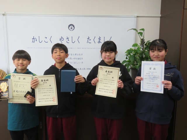 1/26 表彰 公開日 2026/01/26 更新日 2026/01/26 できごと 1月26日(月)、人権ポスター、読書感想文で活躍した児童、そろばん、ジュニアマラソン、上毛カルタで活躍した児童を表彰しました。おめでとうございます。 6年生2名は、藤岡市ジュニアマラソン大会で6年連続出場した「特別賞」を受賞しました。
