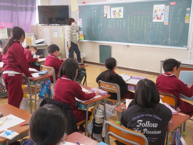 3年生は、道徳「はた・らく」で、「働く」ことについて、資料を使って考えました。