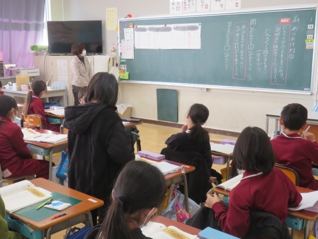 1/29 国語の授業 公開日 2026/01/29 更新日 2026/01/29 できごと 3年生は、国語の説明文「ありの行列」で、「問い」の段落と「答え」の段落を見つけていました。 自分が考えた理由をしっかり説明していました。