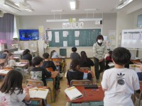 4年生は、算数「わり算」で、「小数÷整数」で学習したことを使って、「整数÷整数」で割り切れない場合の筆算の仕方を話し合いました。自分の考え方をもとに、友だちと話し合うことで「わり進む」という考え方に気づきました。
