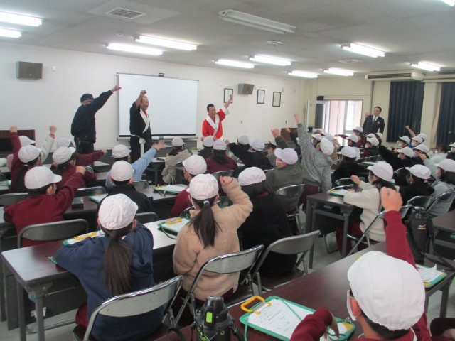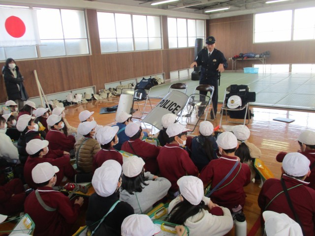 2/6 警察署見学(1) 公開日 2026/02/09 更新日 2026/02/09 できごと 2月6日(金)、3年生は、社会科見学で藤岡警察署に行きました。事前に社会の学習で、見学したいこと、質問したいことをまとめました。お巡りさんから直接、警察の仕事を説明していただいたり、たくさんの道具を見せていただきました。「学びいっぱい」の見学になりました。ありがとうございました。