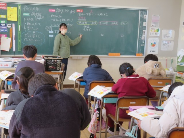 2/9 家庭科の授業 公開日 2026/02/09 更新日 2026/02/09 できごと 2月9日(月)、5年生は家庭科「食べて元気に」で、「夕食アンケート」をもとにして、食品の栄養素について調べました。 なぜいろいろな食材を使うのか考える中で、3つの食品のグループについて確認しました。