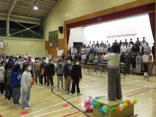 2/20 6年生を送る会(8) 公開日 2026/02/20 更新日 2026/02/20 できごと 6年生は、卒業式で歌う「遙かなる旅路へ」を合唱して、1年生から5年生へ「感謝の気持ち」を伝えました。 会場にいる全員が、感動しました。 みんなで心を一つにして「感謝の気持ち」を伝え合いました。素晴らしい発表会でした。